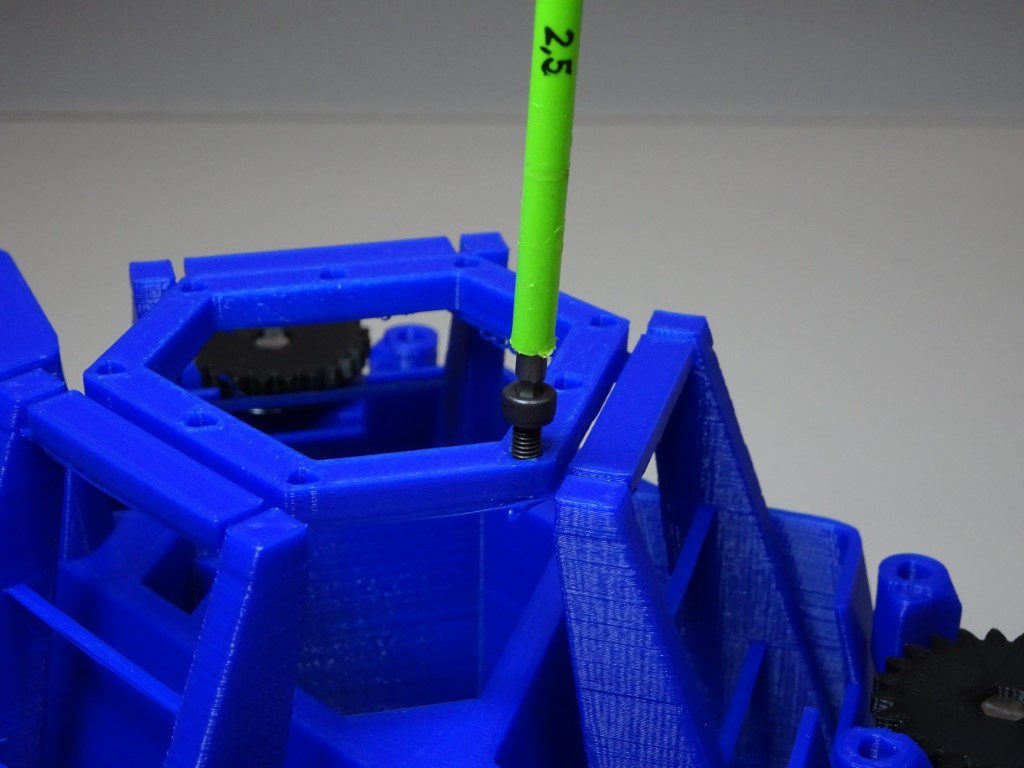 Push the two M3x6mm screws through the lower hole of the sample clip using a 2.5mm hex screwdriver.