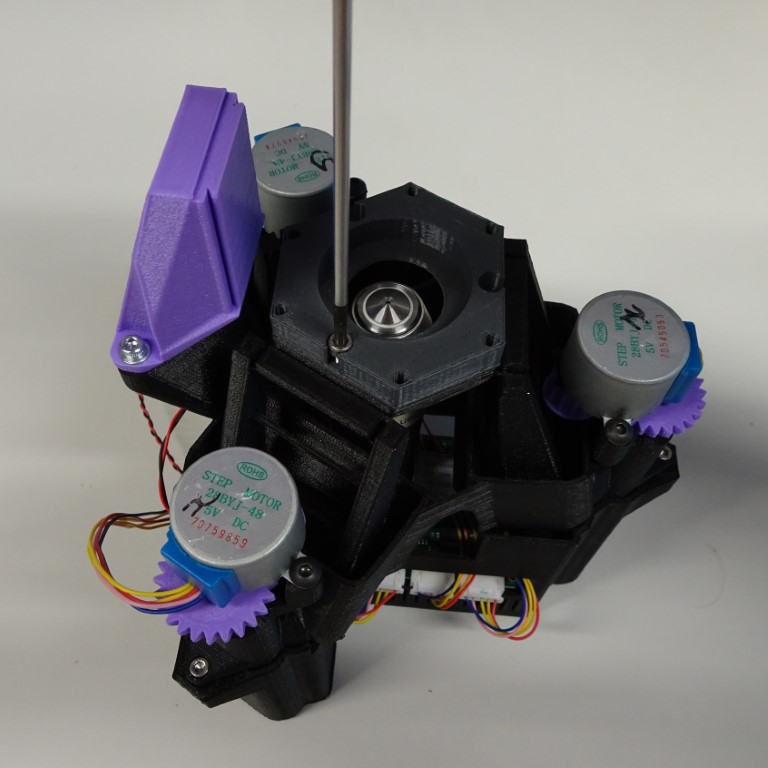 Screw the 35mm petri dish holder to the main body with three M3x6mm screws using a 2.5mm hex screwdriver.