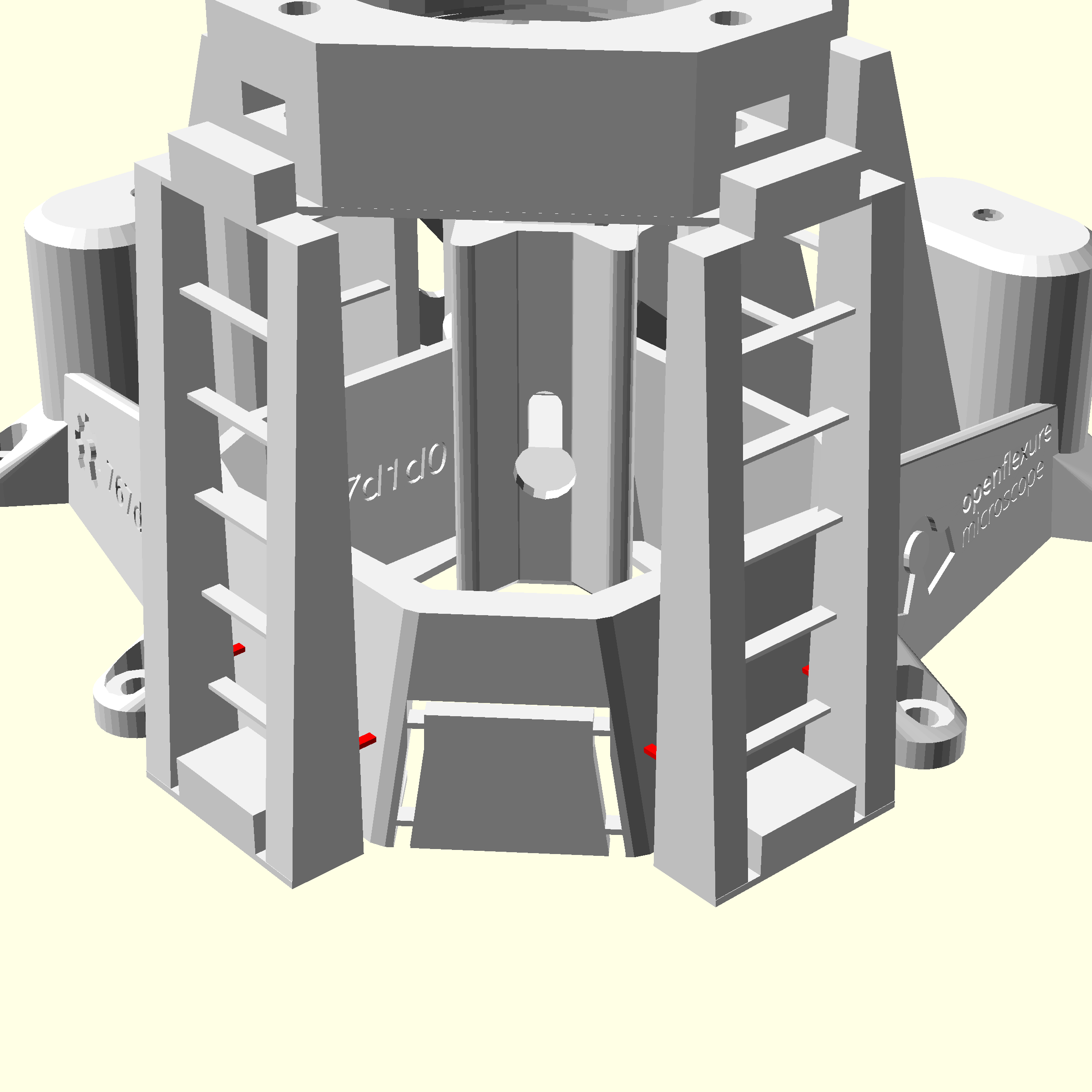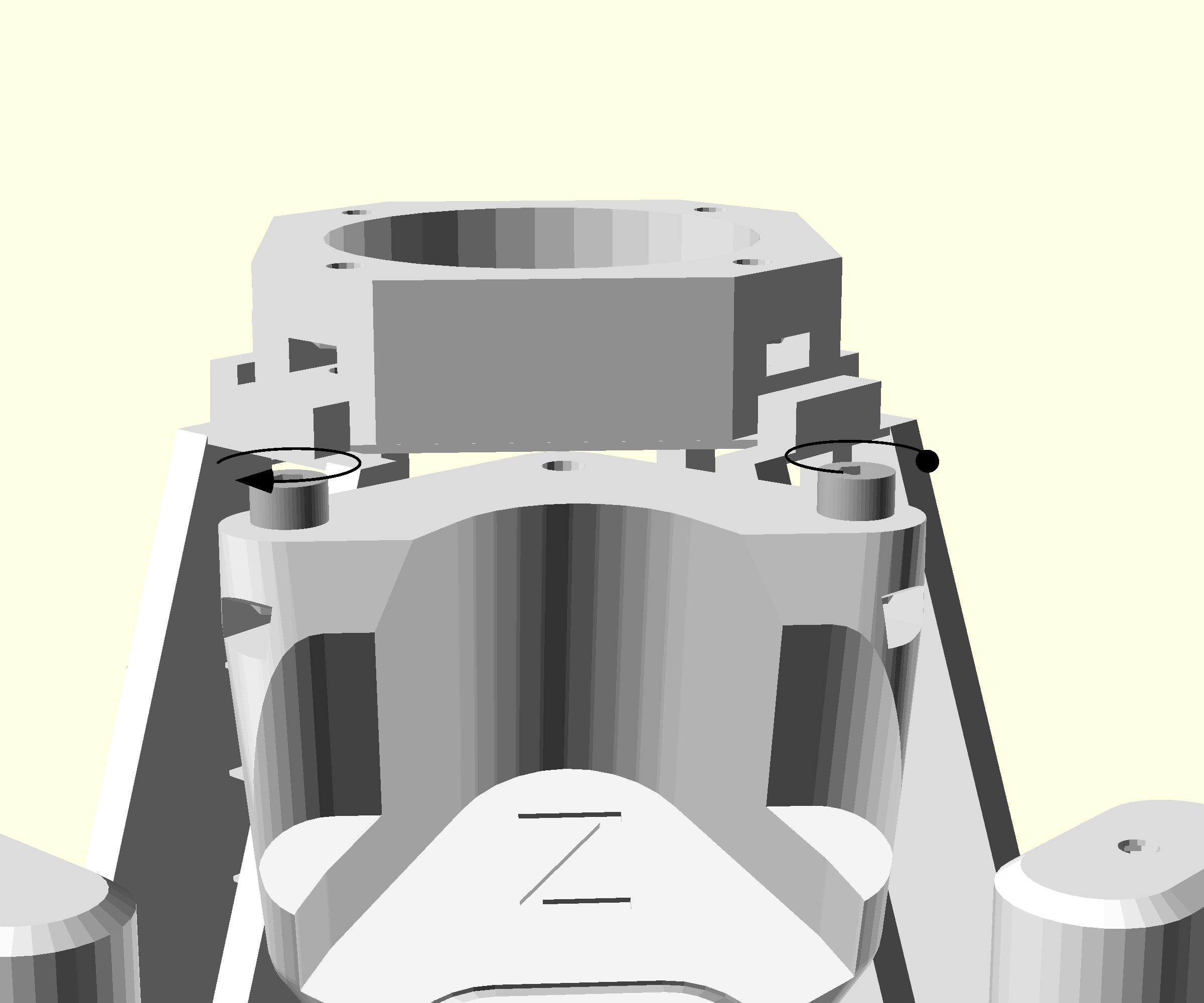 - Repeat the steps used above to add two M3 nuts into the platform above the z-axis. You do not need to insert a nut in the third hole on the illumination platform