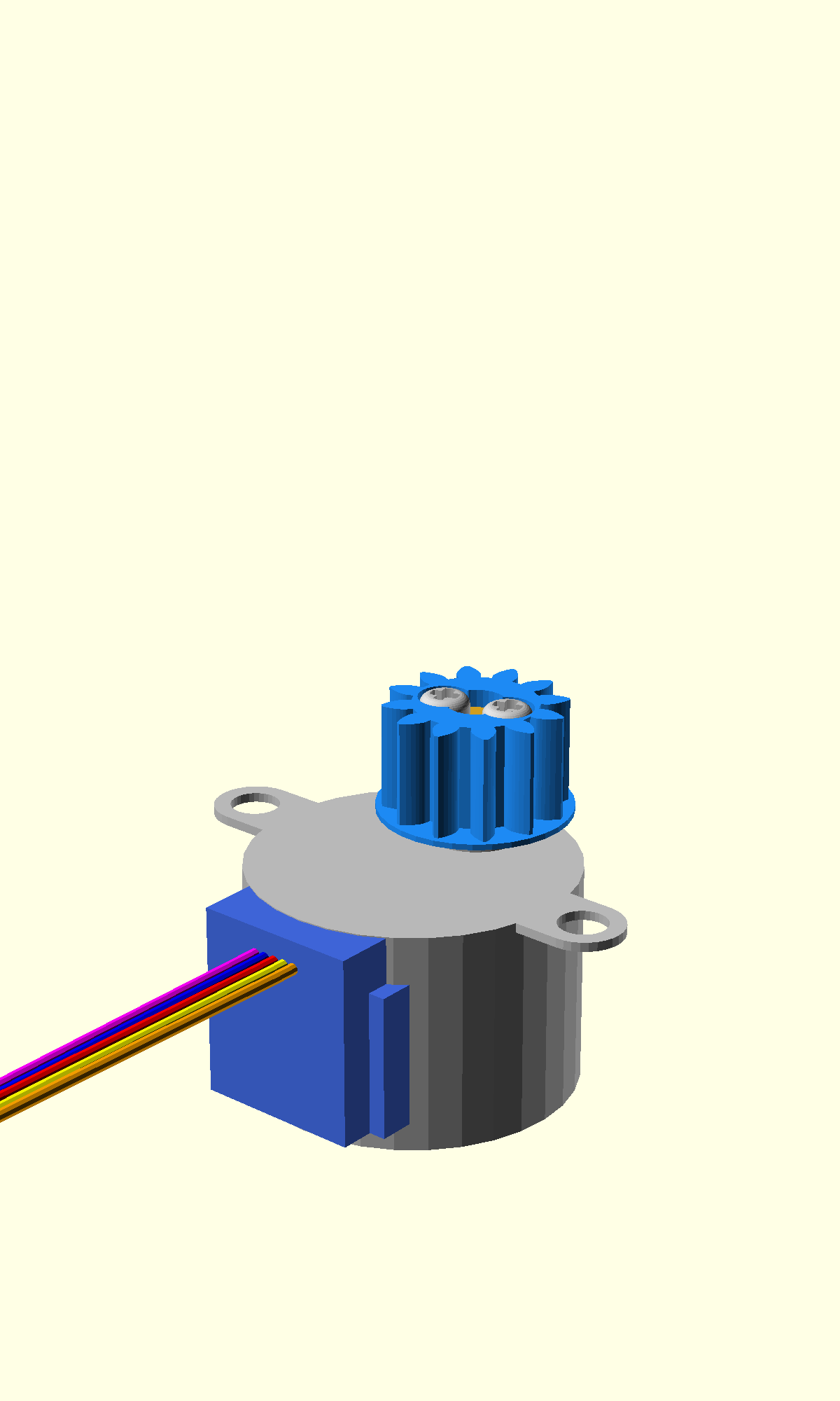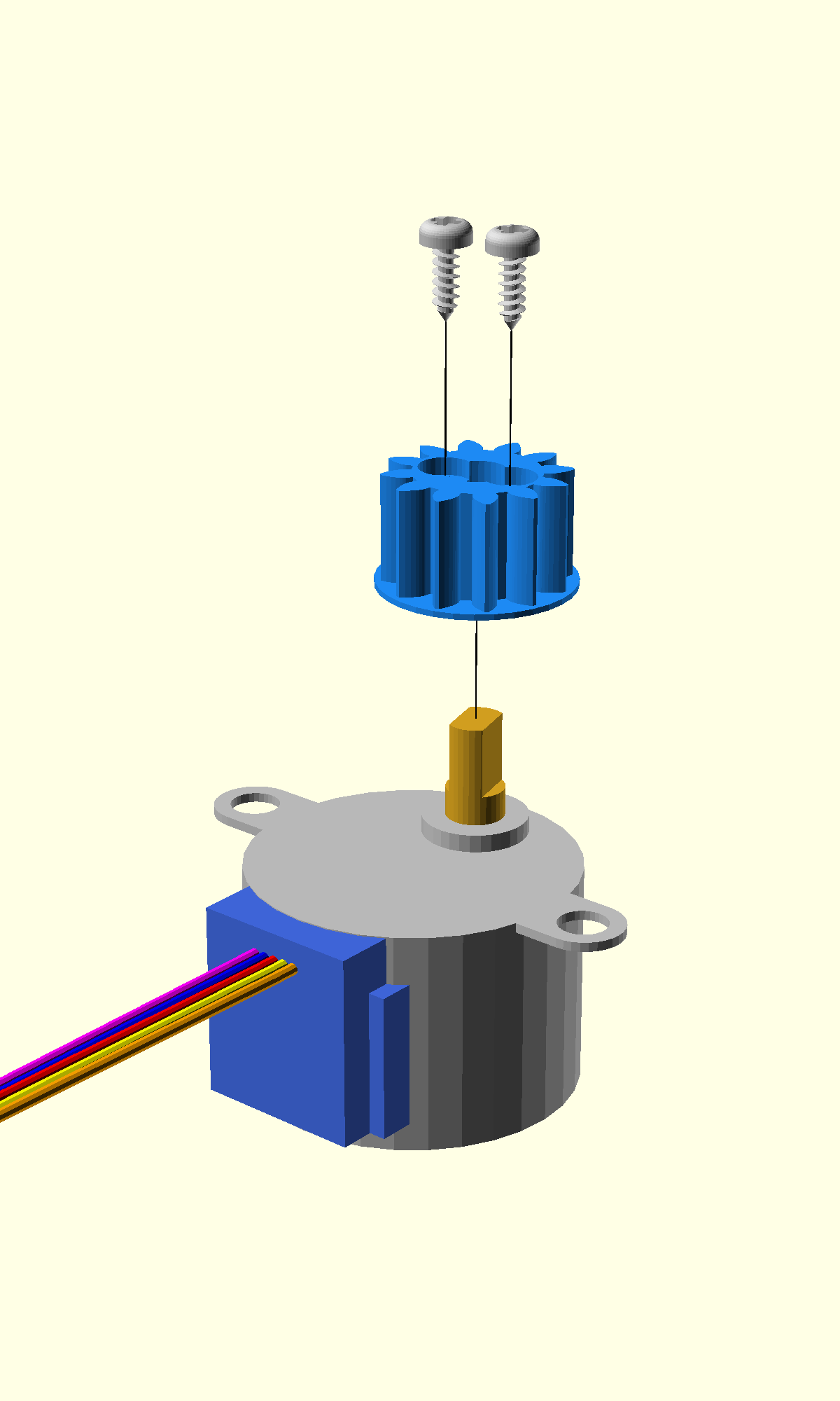 - Take a stepper motor and a small gear.