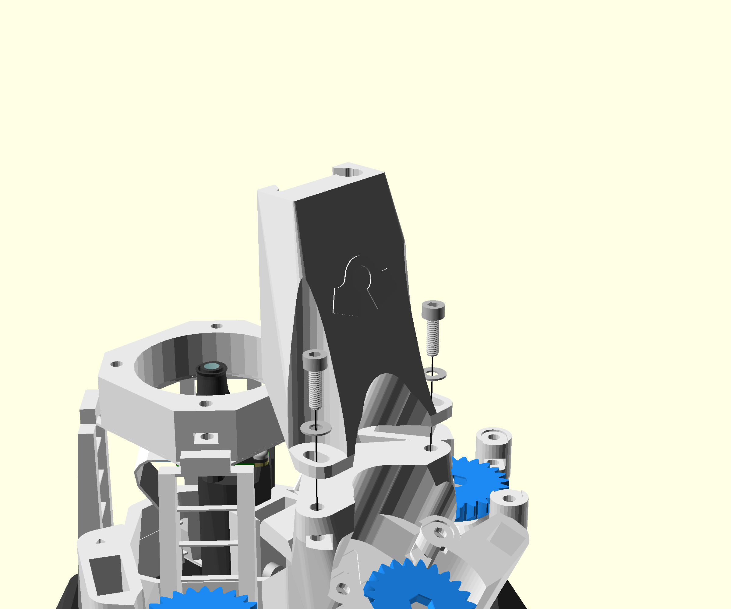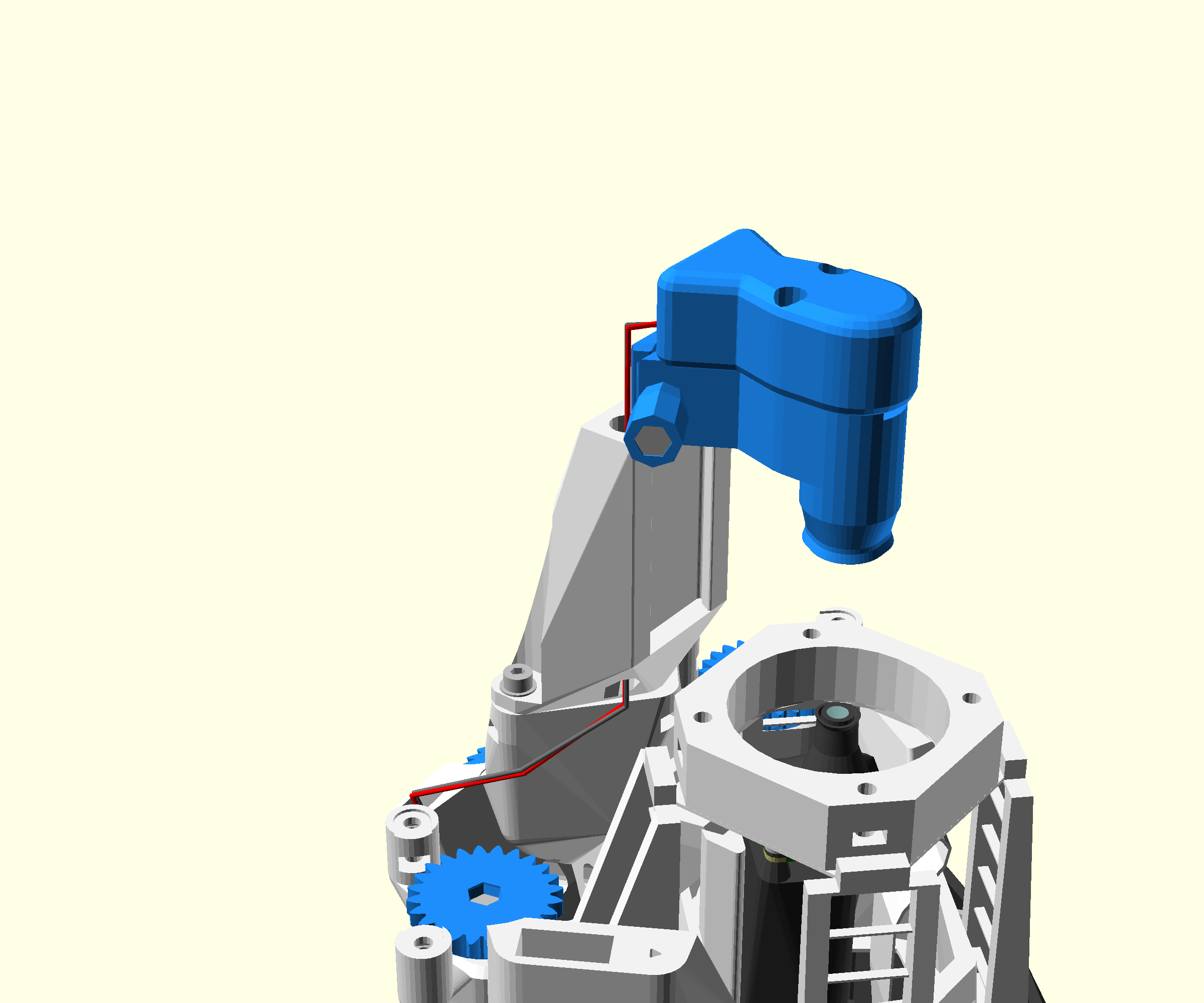 - Pass the illumination cable from the top to the bottom of the cable guide in the main body, between the Z gear and the Y gear.