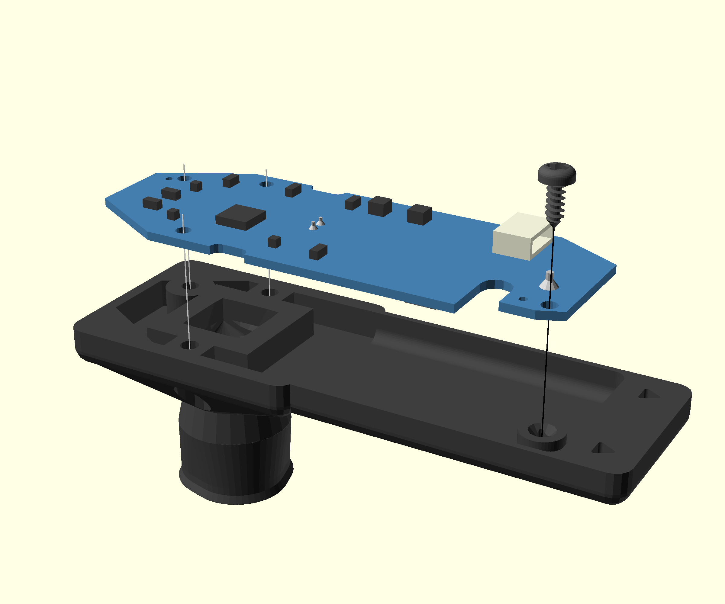 - Take the Logitech C270 camera board and place it on top of the assembled lens spacer, with the sensor facing down