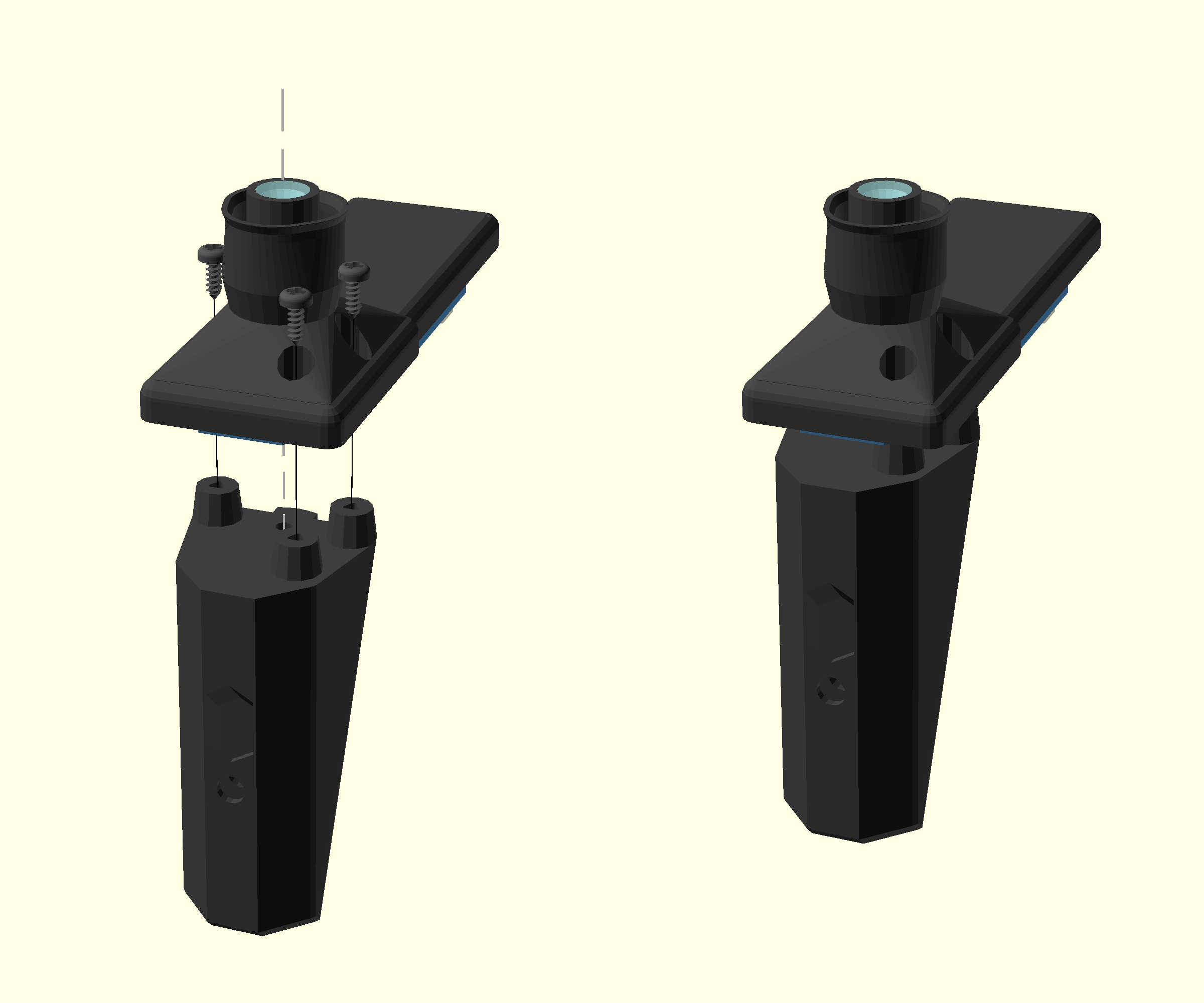 - Take the assembled camera and lens spacer and place it on top of the camera platform
