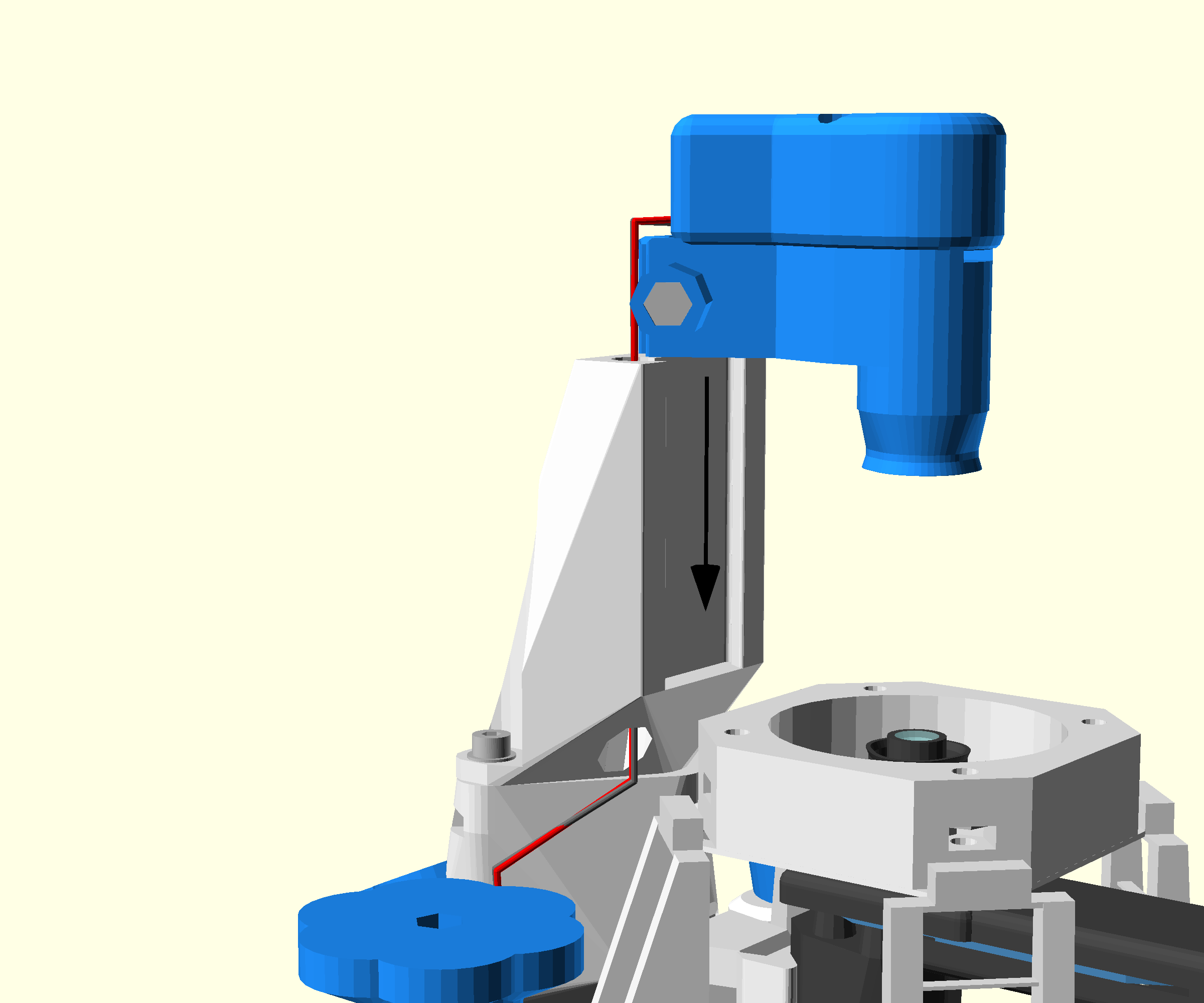 - Pass the illumination cable from the top to the bottom of the cable guide in the main body, between the Z gear and the Y gear.