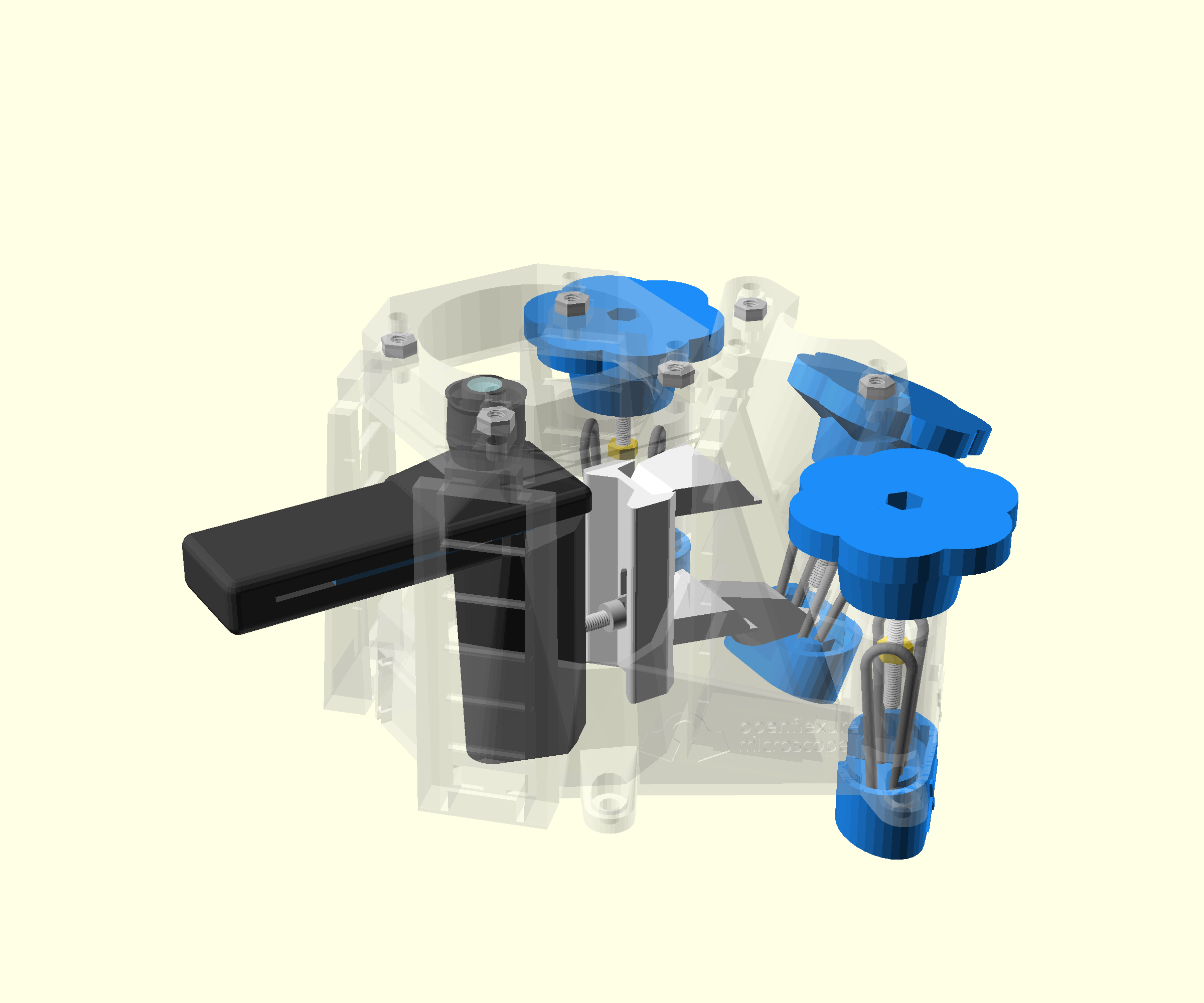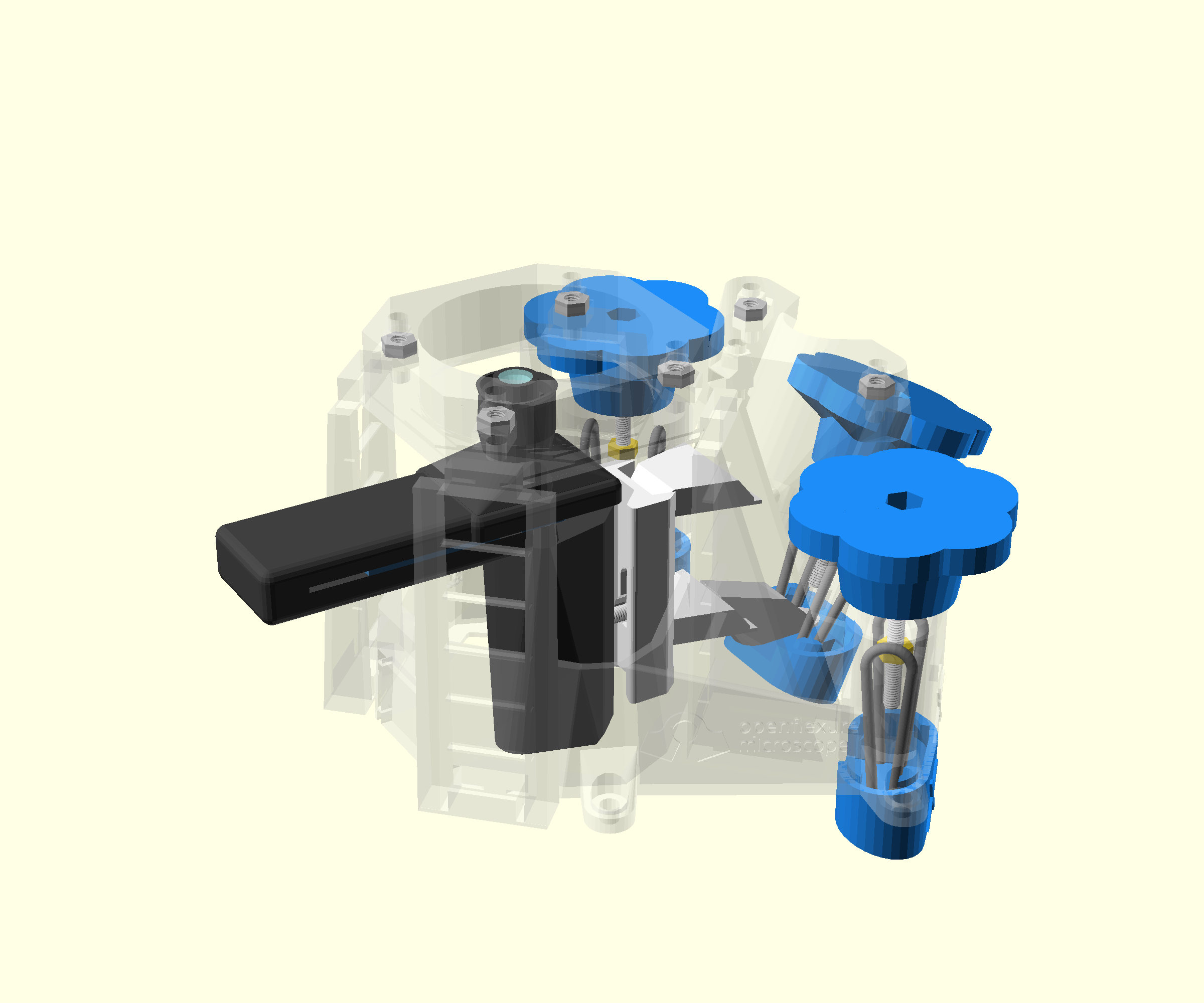 - Use four M3x10 cap head screws to fix the microscope in place using the same Allen key