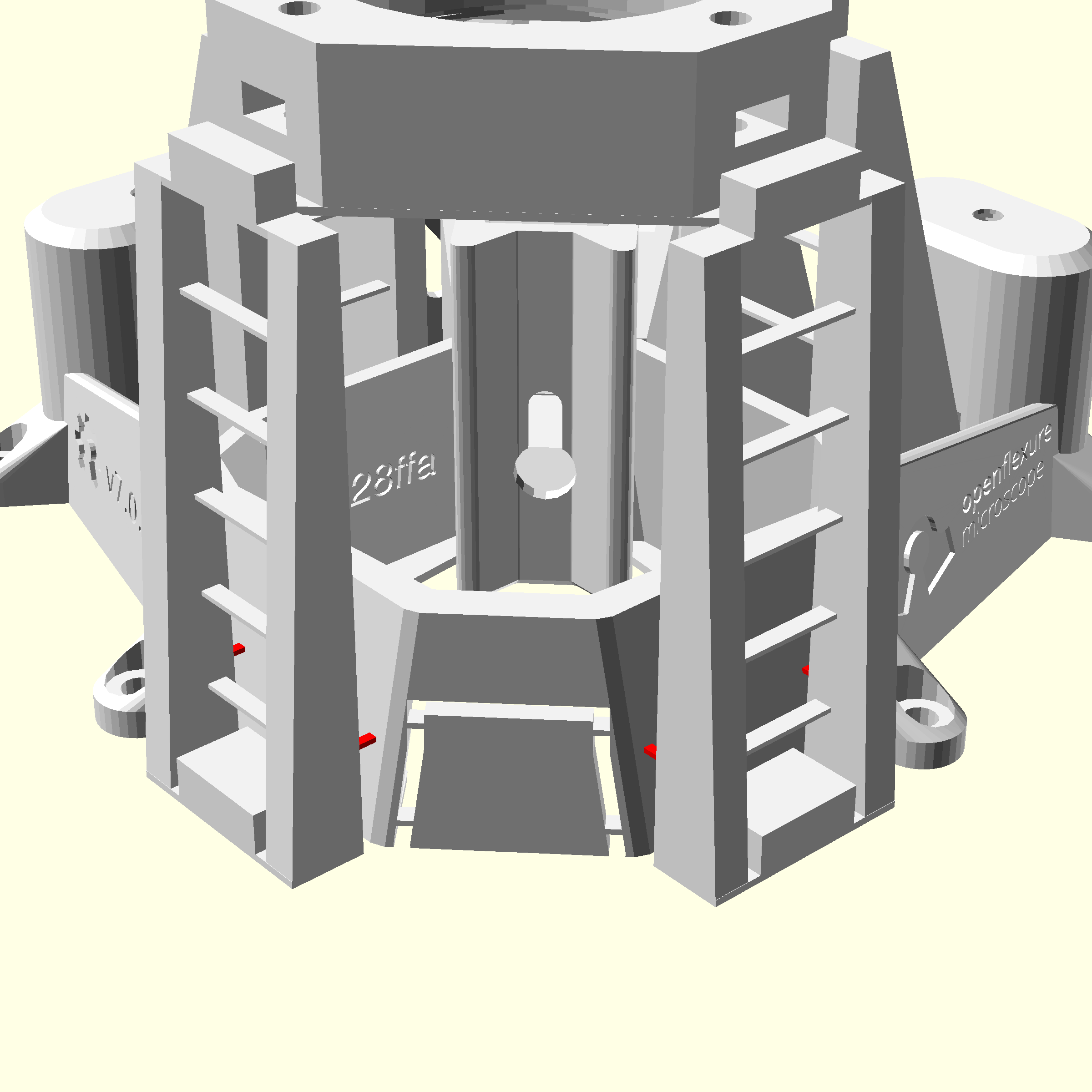 - Repeat the steps used above to add two M3 nuts into the platform above the z-axis. You do not need to insert a nut in the third hole on the illumination platform