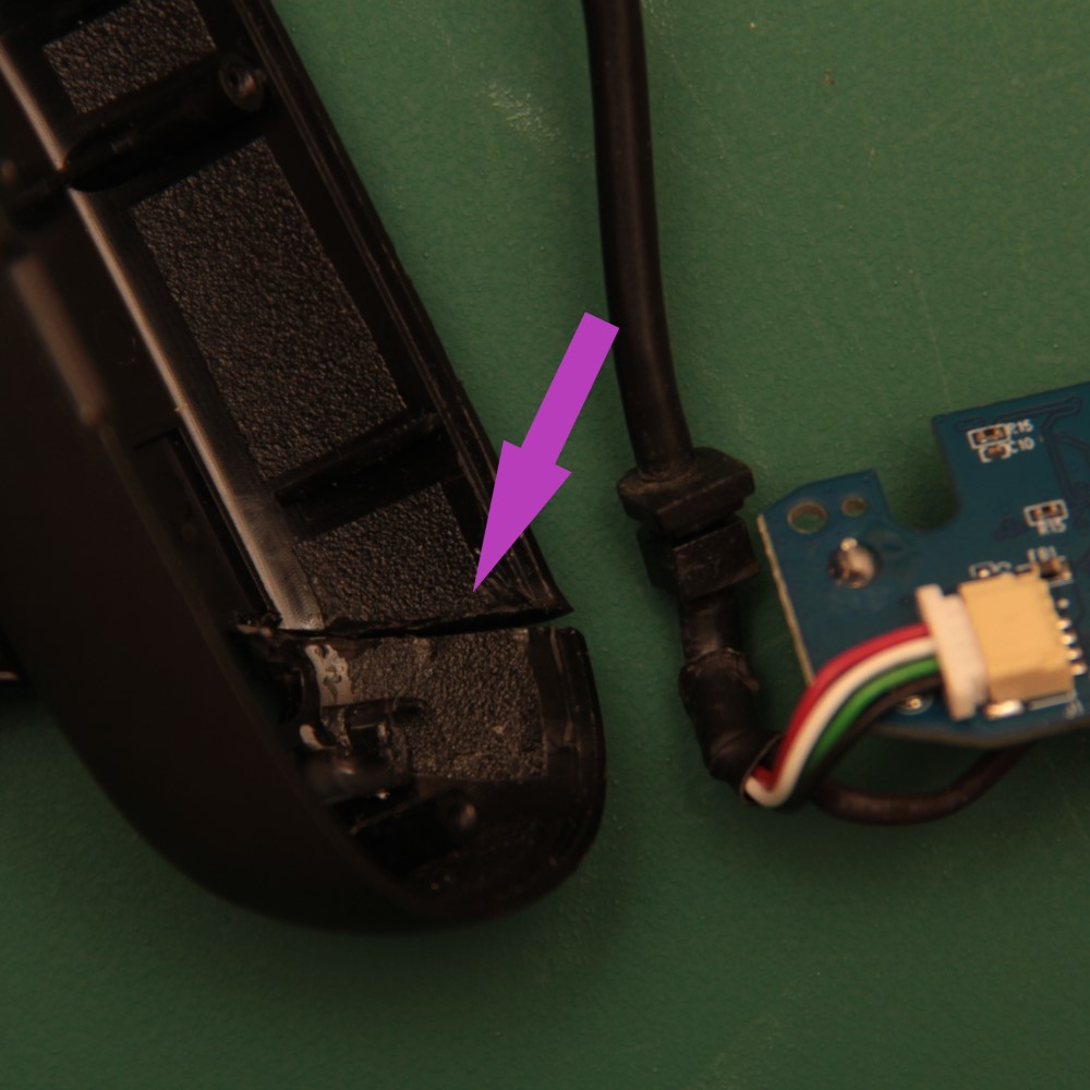 - Cut the case to make a slot from the cable hole to the edge, using side cutters. Take care not to cut the cable