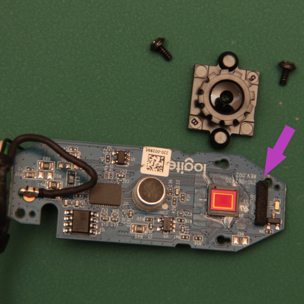- Hold the lens assembly and carefully pull it from the board. The lens assembly is held with double-sided tape and requires a little force to remove.