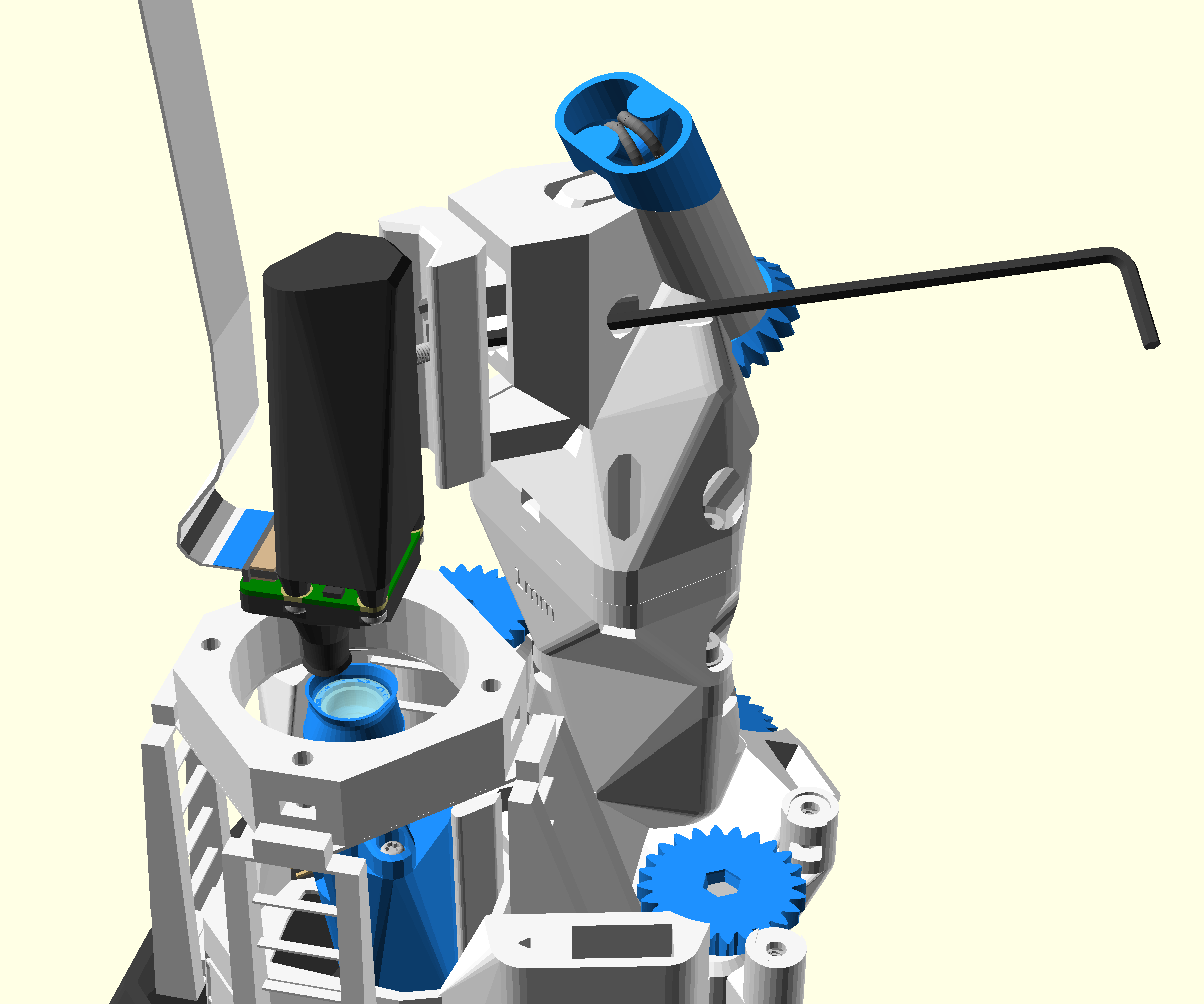 - Insert the 2.5mm Ball-end Allen key through the teardrop shaped hole on the back of the separate z-actuator, until it engages with the mounting screw